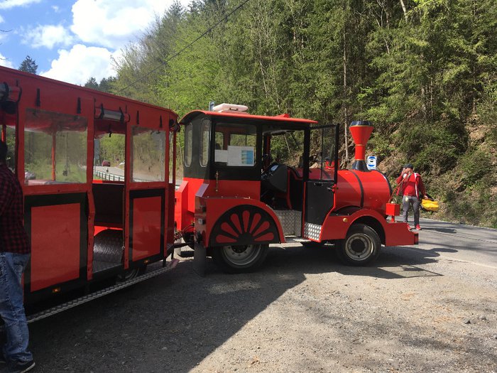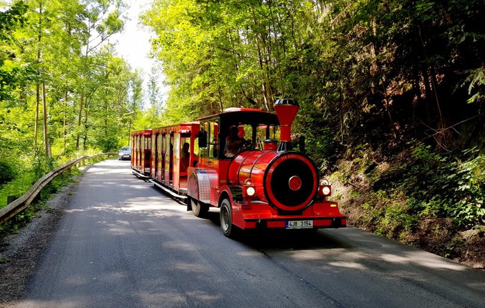 Vláček jezdí z parkoviště pod hradem Pernštejn v obci Nedvědice a sveze návštěvníky až k hradu a následně zpátky na parkoviště.