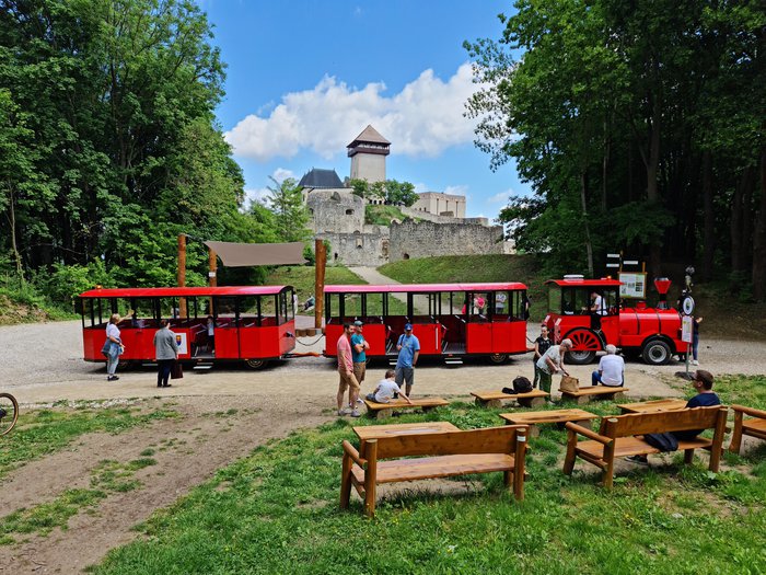 Ve vláčku se nachází audioprůvodce, který seznámí cestující s památkami Trenčína.