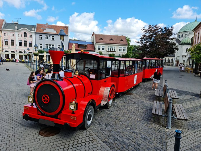 Vláček vyjíždí každou hodinu ze zastávky Městský úřad, projíždí centrem města a míří na Brezinu.